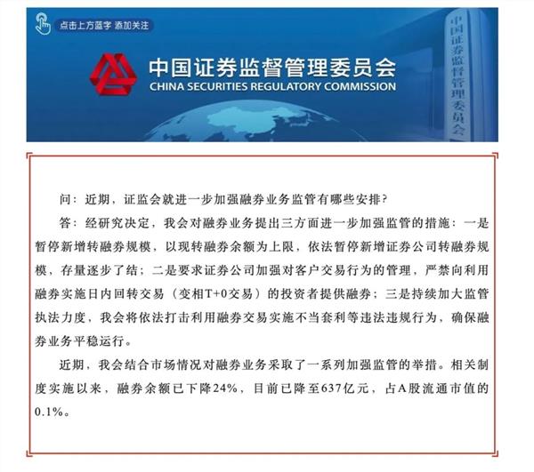 最新!证监会:暂停新增转融券!存量逐步了结