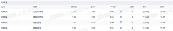 网络整理 2025-09-02 20:26证券之星新能源车行业周报:据上海有色网,截止11月17日,电池级碳酸锂14.05-15.35万元/吨,均价14.7万元/吨,环比上一工作日下滑0.05万元/吨;工业级碳酸锂13.55-14.3万元/吨,均价13.93万元/吨,环比上一工作日下滑0.07万元/吨。近期上游盐厂依然挺价出售散单,但整体成交寥寥,现货成交价格延续下行趋势。此外,近期部分正极端企业出售碳酸锂原料库存,叠加近期锂盐集中到港,均使锂盐供应端增量明显,市场短期以降低库存为主。