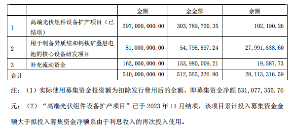 12月13日,京山轻机发布公告称,公司于2023年12月13日召开的十一届董事会第四次会议、十一届监事会第四次会议,审议通过《关于部分非公开发行股票募投项目延期的议案》。同意公司在募投项目实施主体、实施方式、募集资金投资用途及投资规模不发生变更的前提下,将2020年非公开发行股票募集资金募投项目“用于制备异质结和钙钛矿叠层电池的核心设备研发项目”的预定可使用状态日期延期至2024年6月30日。