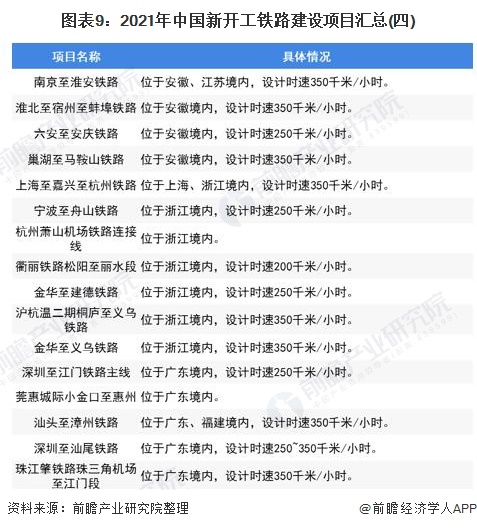2021年初,各省/市相继发布2021年《政府工作报告》部署2021年重点工作任务,其中也涉及铁路方面的重点工作。其中,长三角地区的铁路建设继续快速推进,投资规模保持高位运行,预计在750亿元以上,计划开通新线里程833公里,开工项目11个、投产重点项目6个。