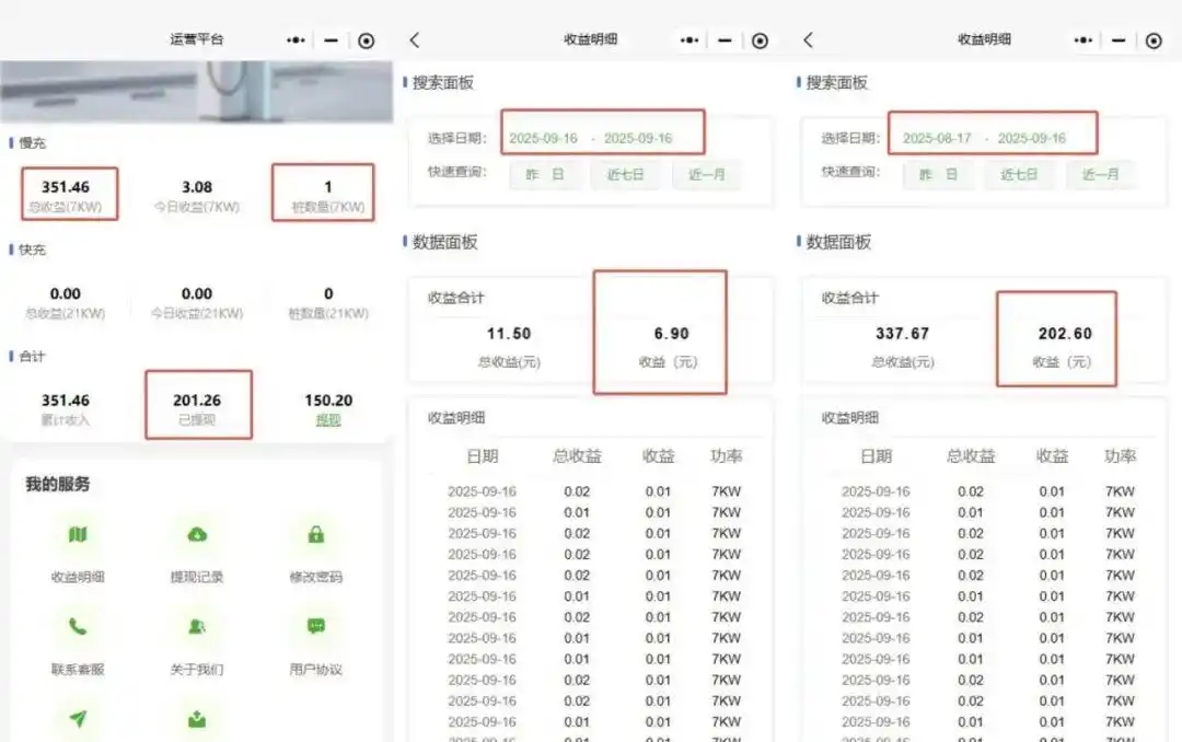 比如有网友花2000元装了一台充电桩,交给运营公司负责运营。“每天到账户是有5-6元收益,提现的话还需要6%的税。每日充电桩收益的60%归自己,40%给运营公司,作为运营的费用。担心是骗子,不知道也不敢追加投资。”