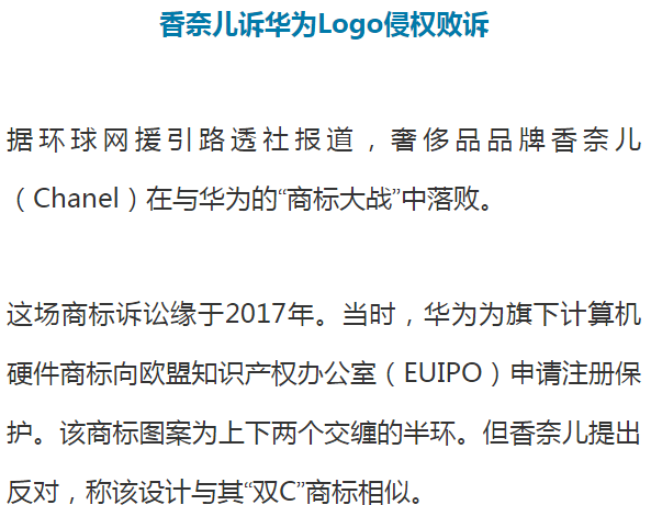 冲上热搜第一!香奈儿诉华为Logo侵权败诉!网友