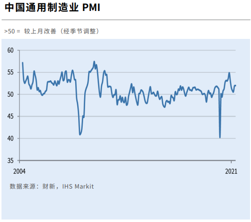财新智库高级经济学家王喆对此解读称,2021年5月制造业继续保持扩张,海内外需求强劲,供给稳步恢复,就业市场保持稳定,制造业景气度仍维持较高水平,后疫情时代经济恢复动能犹在。通胀问题仍是重中之重。