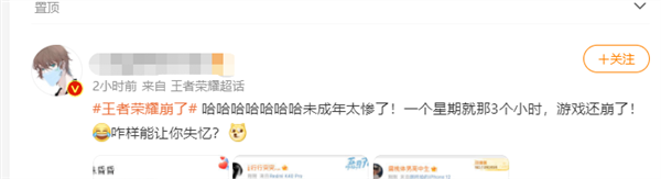 转载请标注:信息网——热搜第一!王者荣耀崩了,网友:一周就3小时,