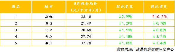 你房租降了吗?8月成都、烟台、北京环比降幅居