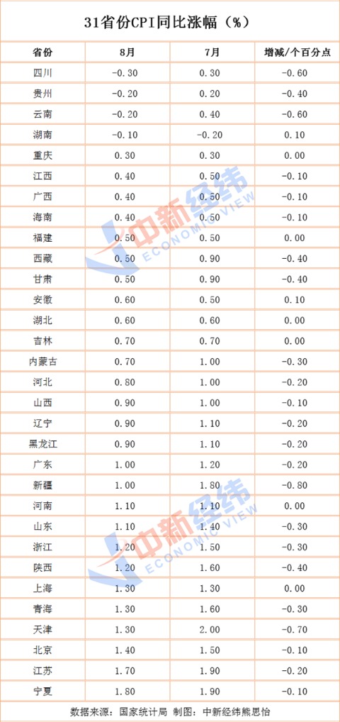 - 2025-09-0131省份8月CPI出炉:11地涨幅