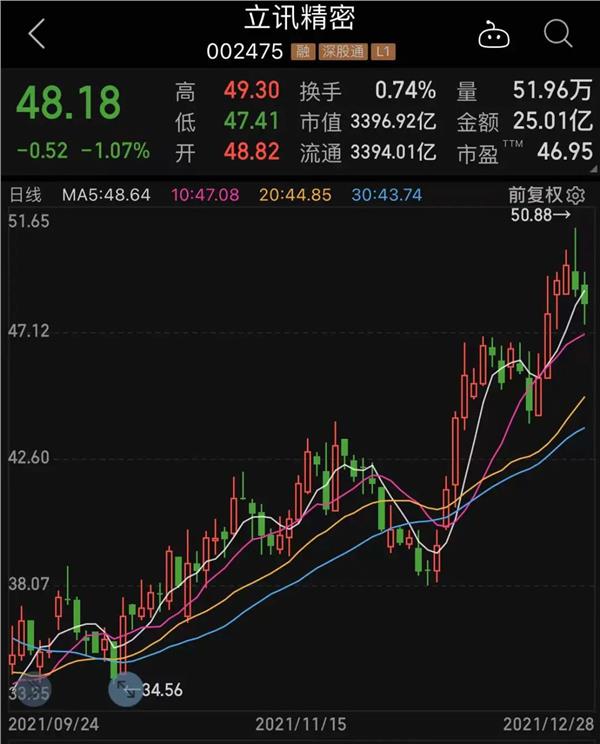 不久前,天风国际知名苹果分析师郭明錤发布研报称,苹果已开始规划第二代AR/MR头戴装置,预计出货时间为2024年下半年。郭明錤同时在研报中表示,立讯精密是苹果第二代AR/MR头戴装置的NPI (New Product Introduction)供应商,这意味着立讯至少在初期为独家供货商。在此消息影响下,立讯精密近期股价显著大涨。