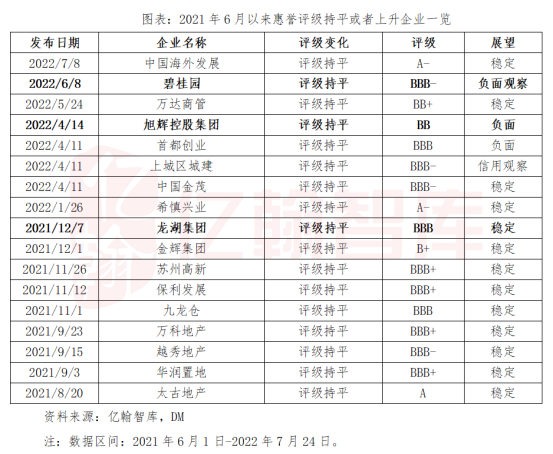 (3)少数企业幸存:仅国央企、港资企业和个别民企能够维持评级,其他企业无一幸免被下调或者接连下调。以惠誉为例,中海、保利等国央企以及太古地产、九龙仓等港资企业能够维持评级,而民企中仅龙湖、碧桂园和旭辉能够维持评级,其他民企则几乎无一幸免。