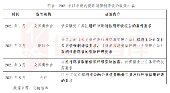 虽然我们预计三大评级机构的权威和影响力短期内不会改变,但是这并不意味着我们一定要接受这样的制度安排,企业可以选择以无评级的方式去发行美元债。一方面,中资美元债主流发行规则RegS并不强制要求评级,而截至2022年初有近半数量的存量中资美元债是以无评级的方式发行的。另一方面,2021年开始我国开始试行债务融资工具注册或发行环节不强制评级的制度,这将从源头上促进境内信用评级市场的市场化改革,促使评级机构回到信用评级的初衷。