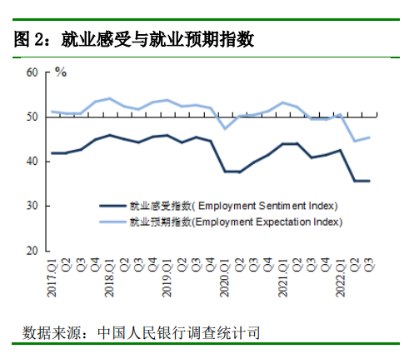 同时,虽然本季度就业感受指数为35.4%,比上季下降0.2个百分点,但居民的就业预期指数却比上季度上升0.8个百分点至45.3%。