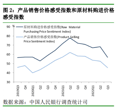 调查显示,三季度产品销售价格感受指数与企业家原材料购进价格感受指数分别为45.4%、56.7%,分别比上季下降6.9、11.4个百分点。70.1%的企业家认为本季度产品销售价格与上季度“持平”;59.5%的企业家认为本季度原材料购进价格与上季度“持平”。